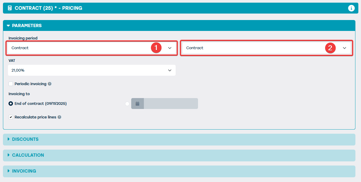Als bij '1' gekozen wordt voor contract, zal met de voorziene check-out in de reservatie rekening worden gehouden. Als er daarentegen voor Effectief wordt gekozen, zal met het effectief check-out moment rekening worden gehouden.