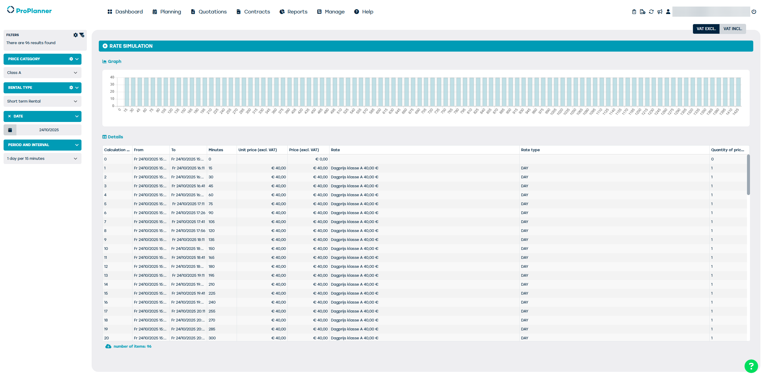 Indien u over de juiste rechten beschikt kunt u vanaf nu binnen ProPlanner een simulatie laten berekenen van de geconfigureerde tarieven.