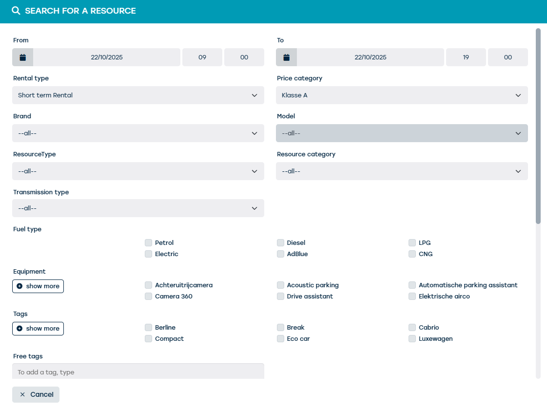 De resource die reeds aan het contract gekoppeld was, wordt van het contract verwijderd. Het contract opent op de stap om een resource te kiezen via het "Zoek resource" scherm.
