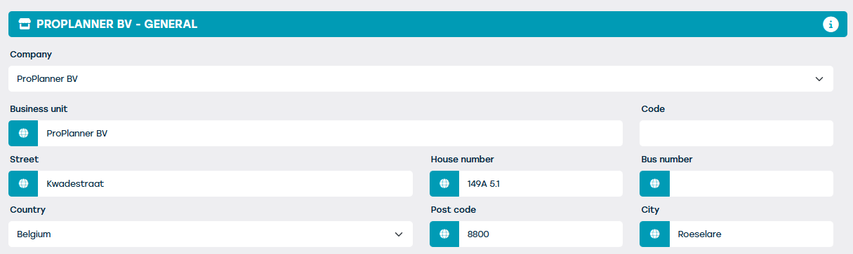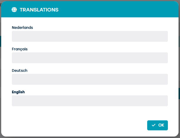 Voor elk van deze velden heb je de mogelijkheid om vertalingen toe te voegen voor alle talen die door ProPlanner worden ondersteund: