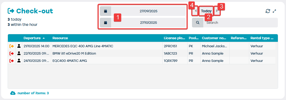 - Enkel de contracten tonen die vandaag moeten vertrekken door op de knop "Vandaag" te klikken (2)