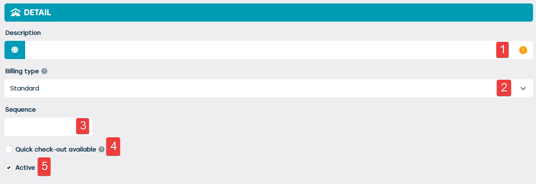 | 2 | Facturatietype | Standaard of intern. Bij de laatste mogelijkheid kan je kostenplaatsen en kostenrekeningen opgeven. | Ja |