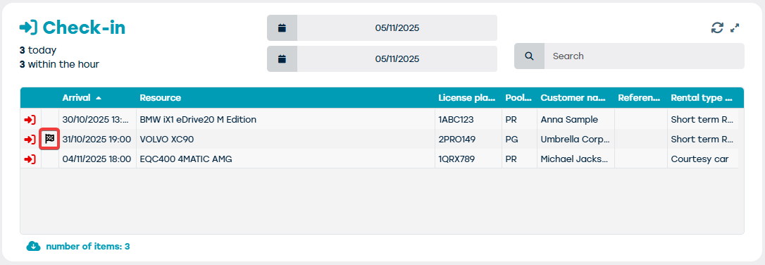 - Tijdens een druk moment komen een groot aantal klanten tegelijk de resource die zij gebruiken terugbrengen. Als er op dat moment slechts 1 werknemer de check-ins kan uitvoeren, leidt dit al snel tot een aanzienlijke wachttijd voor deze klanten, aangezien een enkele check-in toch een paar minuten duurt. Ook hier zou het handig zijn om de teruggebrachte voertuigen snel aan te duiden als klaar voor check-in, waarna de volwaardige check-in op een rustiger moment kan worden uitgevoerd.