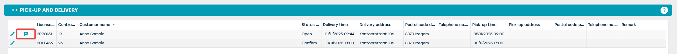 - Ook op het rapport "Haal en breng" (indien de module werd aangeschakeld), zal dit icoontje worden getoond: