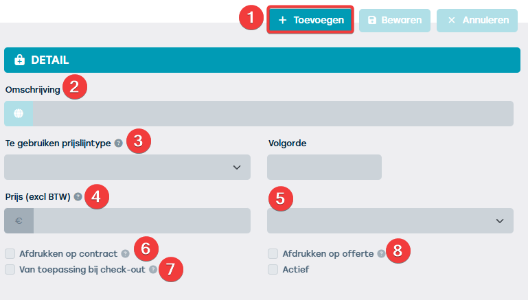 - (5) In deze dropdown kan je bepalen hoe deze prijs aangerekend dient te worden: