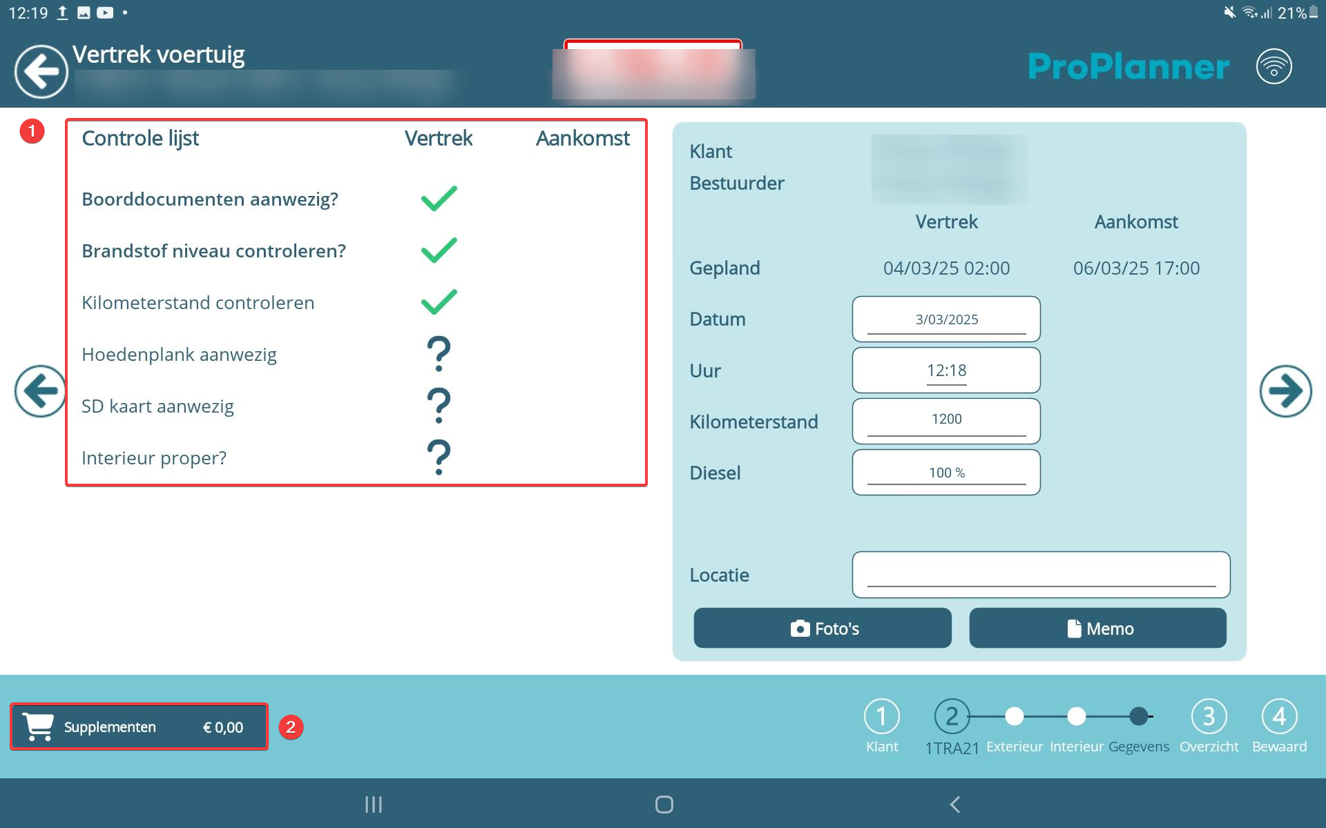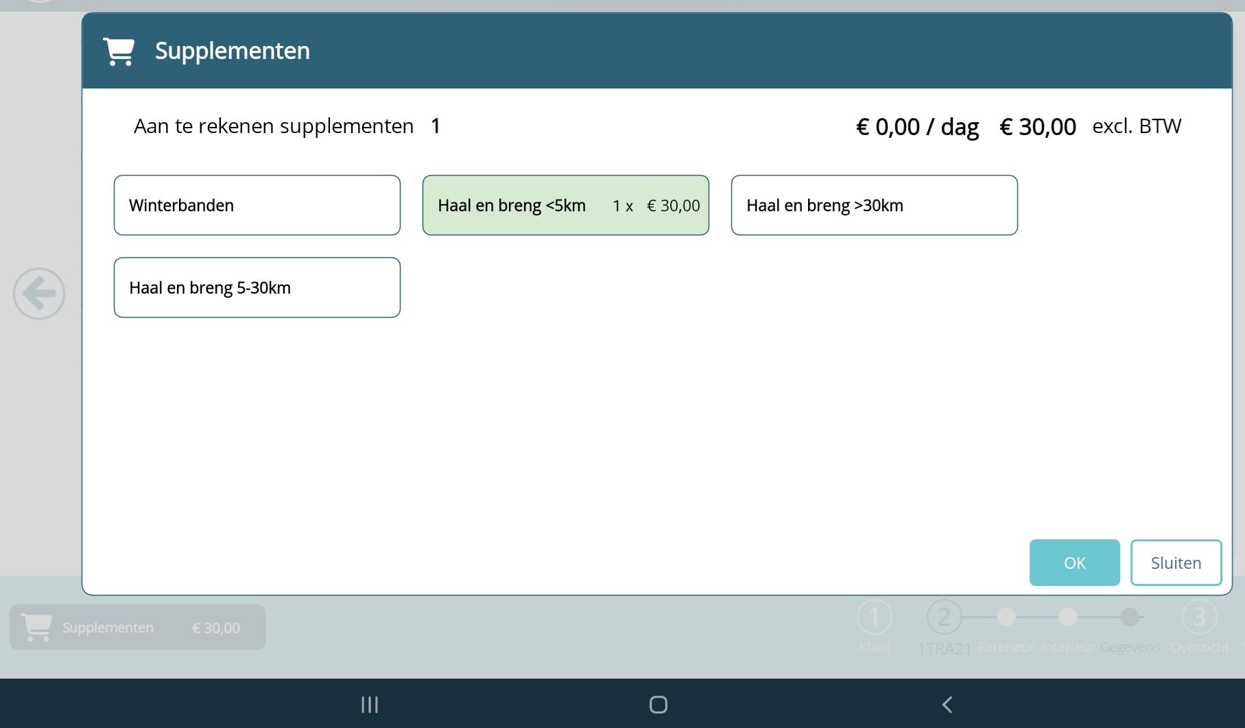 Supplementen kunnen manueel of automatisch worden toegevoegd (of verwijderd) op de tablet bij de check-out of check-in procedure.