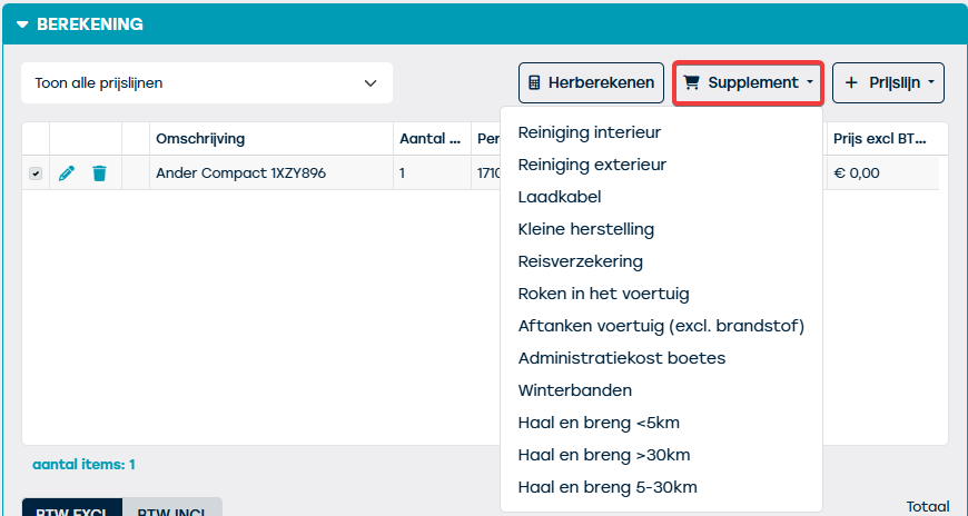Deze supplementen kunnen manueel (op de tarificatie-tile in het contract) of automatisch via een checklist of de pitstopmodule toegevoegd worden.