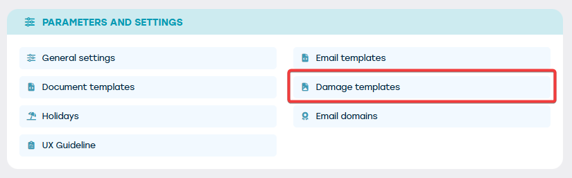 Schade templates instellen kan via beheer (Parameters en instelling) – schade templates