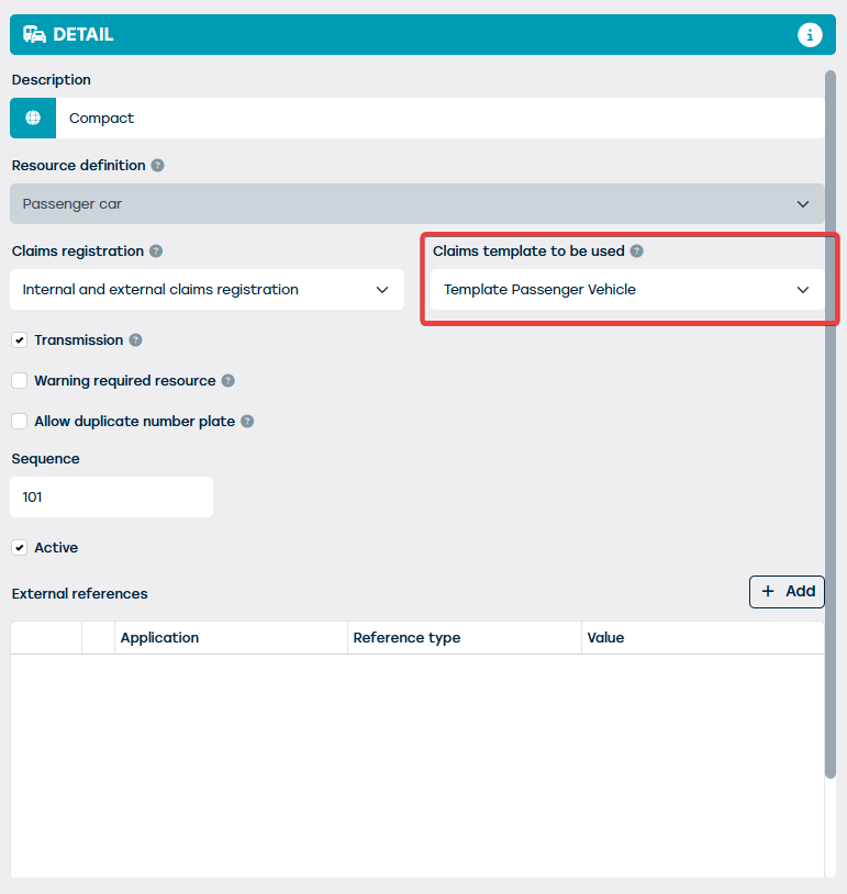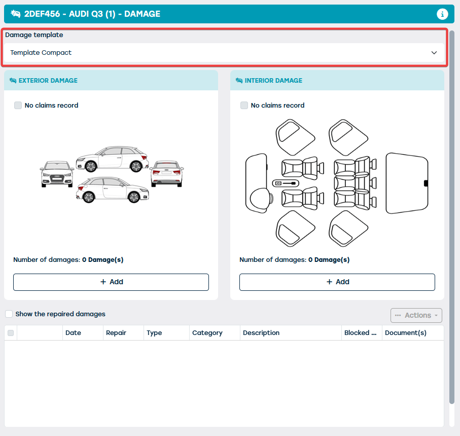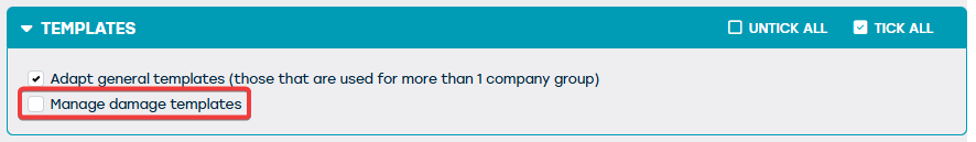 Dit wil zeggen dat, op algemeen niveau, schade templates kunnen toegevoegd en/of aangepast worden.