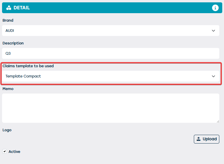 STAP 3: Op het detailscherm kan je een schadetemplate koppelen