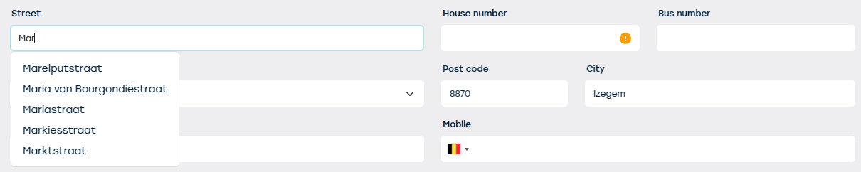 - Deze functionaliteit is standaard geactiveerd in elke omgeving en van toepassing op alle invoerschermen voor adressen. Als u geen gebruik wilt maken van deze functie, neem dan contact op met onze supportdienst