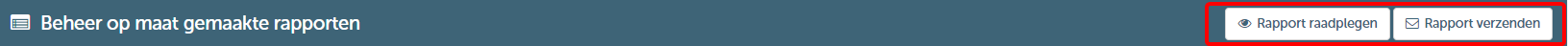 Vervolgens kan je het betreffende rapport raadplegen (i.e. op het scherm tonen) of verzenden (i.e. versturen naar de ingestelde ontvanger) via de knoppen in de titelbalk. Let wel, niet elk rapport kan worden geraadpleegd op het scherm. Rapporten die te complex zijn om instant te worden gegenereerd, kunnen enkel worden opgevraagd via mail.