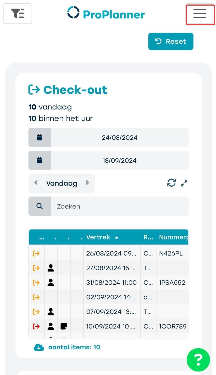 Je kunt navigeren tussen de verschillende menu's via het hamburgermenu rechtsboven.