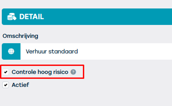 Opgelet: voor deze laatste categorie ‘bij hoog risico’ moet onderstaande checkbox aangevinkt worden op prijsklasse: